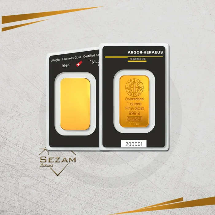 Na aversu se nalazi logo Argor-Heraeus, oznaka zemlje porekla „Switzerland“, natpisi „1 oz Fine Gold 999.9“ i serijski broj, dok revers sadrži zaštitni uzorak sa diskretnim linijama i gravurama koji potvrđuju originalnost i autentičnost.